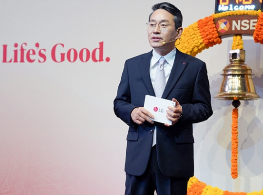 LG전자 인도법인이 14일(현지시간) 인도 증권시장에 상장했다.LG전자는 이날 인도 뭄바이 국립증권거래소(NSE)에서 조주완 CEO, 김창태 CFO, 전홍주 인도법