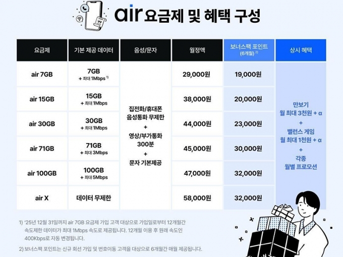 회선 가입 없이 에어 앱 회원 가입만 해도 포인트를 지급하는 이벤트도 진행된다. 에어 앱에 회원으로 가입하는 고객 모두에게 1만포인트를 가입 즉시 지급하며, 친구 초대 이벤트를 통해 총 200팀(400명)을 추첨해 1팀당 네이버페이 포인트 10만원을 지급한다. 친구 초대 이벤트는 이달말까지 진행된다.
