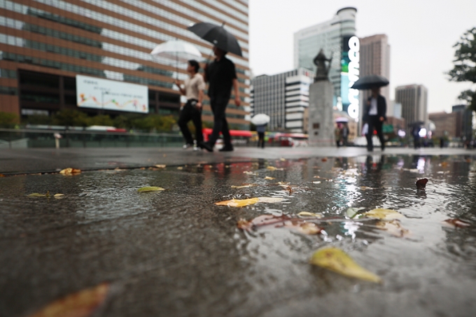 장마같은 가을비가 기온도 큰폭으로 떨어뜨리고 있다. 비가 내리면서 매일 하강하는 기온은 갑자기 찬바람이 불면서 주말아침 5℃까지 훅 내려간다.