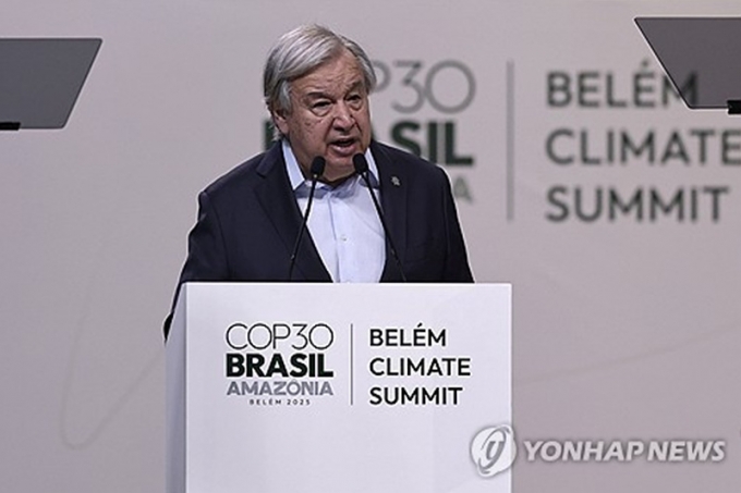 안토니우 구테흐스 유엔(UN) 사무총장이 제30차 유엔기후변화협약 당사국총회(COP30) 개막을 앞두고 "지구온난화 1.5℃ 목표를 놓친 것은 인류의 도덕적