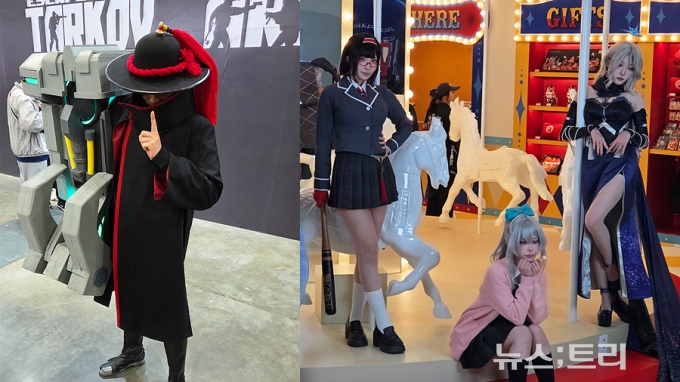 지스타 행사장 내외부를 가리지 않고 코스어들이 뽐내는 형형색색의 코스프레도 관람객의 눈길을 사로잡았다. 대형 게임사 부스에는 신작이나 대표IP 속 캐릭터로 분장한 전문 코스어들이 무대에서 포즈를 잡았고, 전시장 곳곳에서 인기 게임부터 일본 애니메이션까지 다양한 캐릭터들을 만나볼 수 있었다. 네오위즈가 퍼블리싱하는 인디게임 '산나비'의 주인공 '금 준장'으로 꾸미고 온 최모(26)씨는 "개인적으로 너무 재밌게 즐겼던 게임 속 캐릭터가 된 기분으로 참가했다"며 "어떤 분은 네오위즈에서 부른 전문 코스어냐고 물었는데, 그만큼 퀄리티가 높다는 뜻이니 기뻤다"고 했다. 최씨는 지스타 마지막날인 16일 진행되는 '코스프레 어워즈'에도 참가할 예정이다.