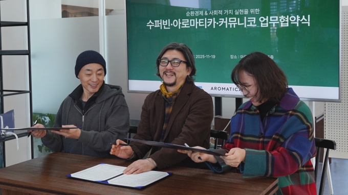 AI 기후테크 기업 수퍼빈과 아로마테라피 기반 스칼프&스킨케어 브랜드 아로마티카, 교육혁신 비영리단체 커뮤니코가 '지속가능한 자원순환체계 구축을 위한 공동협력 업무협약(MOU)'을 체결했다고 21일 밝혔다.