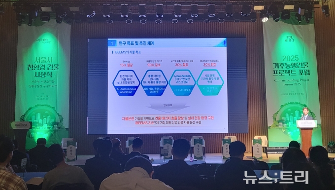 문현준 단국대학교 교수는 9일 서울시 주최로 열린 '2025 기후동행건물 프로젝트 포럼'에서 세계 최초로 구축한 AI 기반 자율운전 에너지 관리시스템 'iBEEMS'의 적용사례를 소개하면서 "건물도 자동차처럼 자율운전이 가능하다"고 밝혔다. iBEEMS 시스템은 AI가 주변상황을 인지해 직접 건물을 자율제어하는 것으로, 문 교수는 "iBEEMS를 도입하면 에너지를 최소 15%에서 42%까지 아낄 수 있고, 호흡기 감염 위험도 90%까지 줄일 수 있다"고 강조했다.