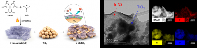 이에 연구팀은 알갱이처럼 작은 형태의 촉매 입자를 종이처럼 얇고 넓게 펼쳐 사용하는 구조로 변형시켜 적용했다. 이리듐과 백금을 지름 1~3마이크로미터, 두께 2나노미터 이하의 초박막 이리듐 나노시트로 만든 것이다. 사용된 이리듐의 양은 같지만 반응하는 면적은 더 넓어졌다.