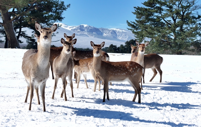 ▲제주 설원의 꽃사슴 무리 (사진=연합뉴스)