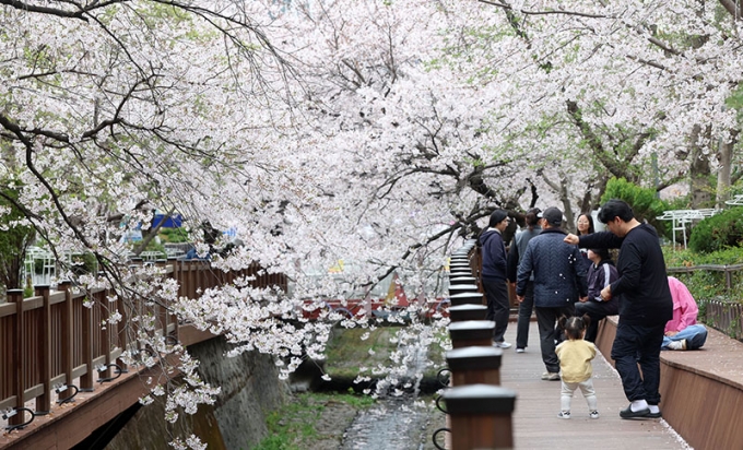 ▲마산합포구 소하천 거리에 활짝 핀 벚꽃 (사진=연합뉴스)