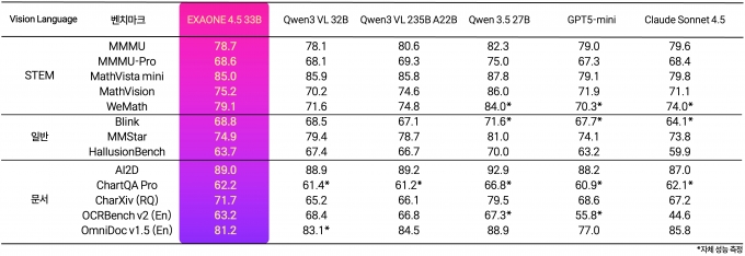 일반 시각 이해를 측정하는 3개 지표와, 이미지와 텍스트가 결합된 인포그래픽을 비롯해 전문 문헌 속 복합 정보를 읽어내는 문서 이해 및 추론 성능 평가 지표 5개를 포함한 13개 지표 평균 점수에서도 지피티(GPT)5-mini와 클로드 소넷(Claude Sonnet) 4.5, 큐웬(Qwen)3-VL을 상회했다.