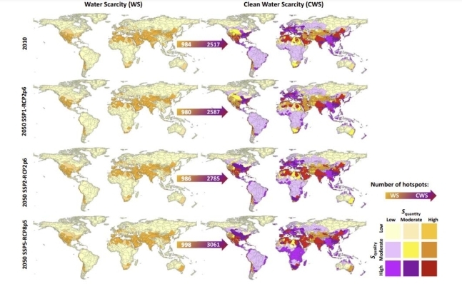 이에 연구팀은 기후변화와 사회경제적 변화가 2050년 깨끗한 물 부족에 어떻게 영향을 미치는지를 분석하기 위해 전세계 강 유역을 1만개 이상 하위 유역으로 나누고 각 유역의 하천 배수량과 질소 오염도를 분석했다.