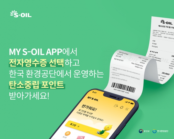지난해 3월 서비스를 시작한 에스오일 전자영수증은 한국환경공단과 협업으로 발급 1건당 100원의 탄소중립포인트를 발급해주는 생활 실천형 친환경 캠페인이다.