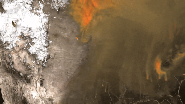 이것은 기후연구에 사용되는 테라 위성의 분광복사기(MODIS)와 지구관측위성 수오미에 탑재된 가시적 외선이미지센서 VIIRS를 비롯해 위성계측기의 지상관측 데이터를 기반으로 제작된 시뮬레이션 영상이다.