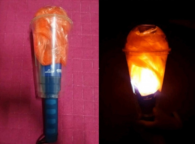 기상천외한 아이디어가 돋보이는 DIY 응원봉도 눈길을 끌고 있다. 응원봉이 없는 사람들을 위해 샤워헤드로 만든 응원봉, 리유저블컵과 전구로 만든 응원봉, 일회용컵과 주황색 비닐봉지, 손전등으로 횃불모양으로 만든 응원봉 등 온라인에서는 신박한 방법이 공유되고 있다.