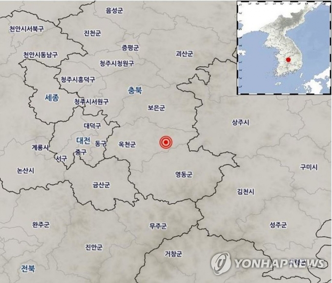 8일 오전 충북 옥천 동쪽 지역에서 규모 3.1의 지진이 발생했다.
