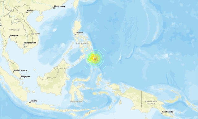 영국 가디언에 따르면 필리핀 화산대기청은 10일 오전 9시43분께 민다나오섬에 있는 마티에서 북동쪽으로 63㎞ 떨어진 해역에서 규모 7.6 강진이 발생했다고 밝혔다. 유럽-지중해 지진센터는 이번 지진의 규모를 7.4, 진원의 깊이를 58km(36마일)로 추정했다.