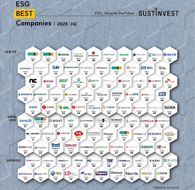 ▲2025년 하반기 ESG 우 Best Companies (사진=서스틴베스트)