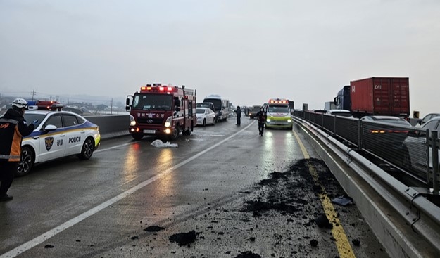 비온뒤 살얼음판 도로...상주에서 차량 15대 '쾅쾅쾅'