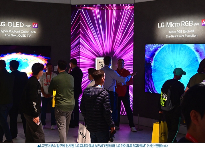 LG전자는 LVCC 메인 입구에서부터 존재감을 뽐냈다. LVCC 센트럴홀에 2044㎡ 규모 전시관을 마련한 LG전자는 고객 중심으로 공간과 제품이 유기적으로 작동하는 '공감지능의 진화'를 주제로 부스를 꾸렸다. 전시장 입구에는 'LG OLED 에보 AI W6'을 비롯한 올레드 신제품과 프리미엄 LCD TV 'LG 마이크로 RGB 에보' 등에 화려한 미디어 아트를 재생해 사람들의 눈길을 끌었다.