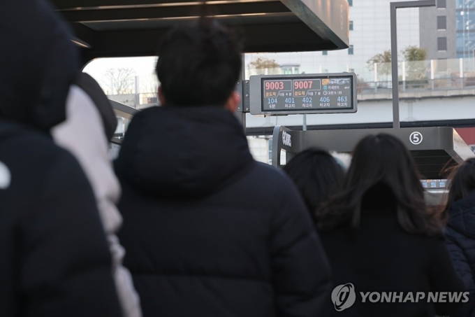 체감온도가 영하 7℃ 안팎까지 떨어진 13일 아침, 서울 시내버스가 전면 운행을 중단하면서 시민들은 출근길에 발을 동동 굴러야 했다.