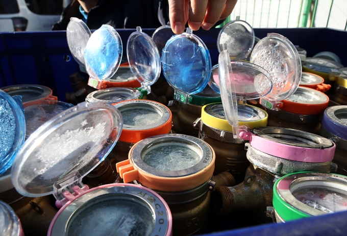 ▲한파에 파손된 수도계량기(사진=연합뉴스)