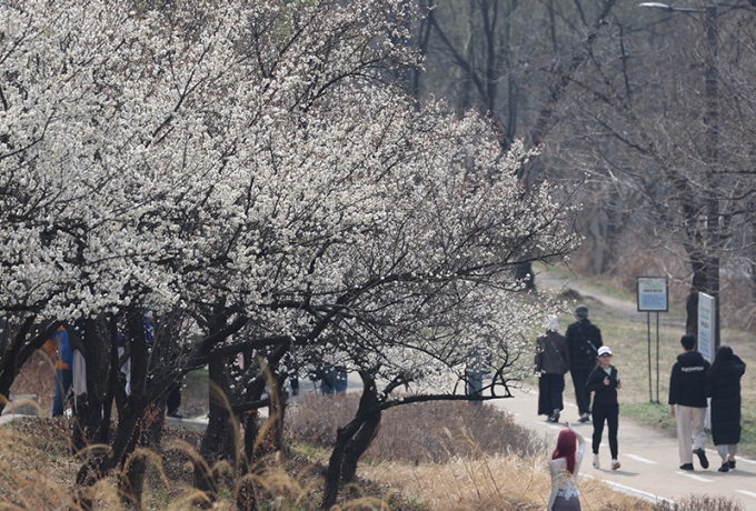 ▲ 22일 서울 성동구 청계천 하동매실거리에 매화가 피어있다. (사진=연합뉴스)
